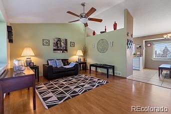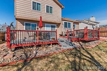 Welcome home, located in Powderhorn neighborhood with no HOA. Newer triple pain windows and doors. The main floor has a vaulted ceiling in Living room, kitchen, and nook area. Upstairs there is 3 bedrooms with and 2 bathrooms. Lower lever family room that leads out to a wonderful newer trex deck and entertaining area. The basement has a laundry room, 1/2 bath and large rec/bonus room with a wet bar.