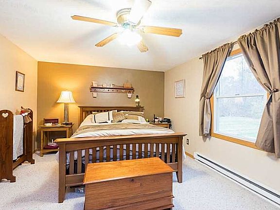 This delightfully well kept home offers a bright and open floor plan with a pellet stove. A great place to raise a family with its large deck and landscaped pond that over looks the children's play area and view of the woods. The home has many updates including new windows, roof and flooring throughout. All appliances stay in this modern kitchen. The bonus room off the garage is heated with a pellet stove and makes for an ideal recreational room.