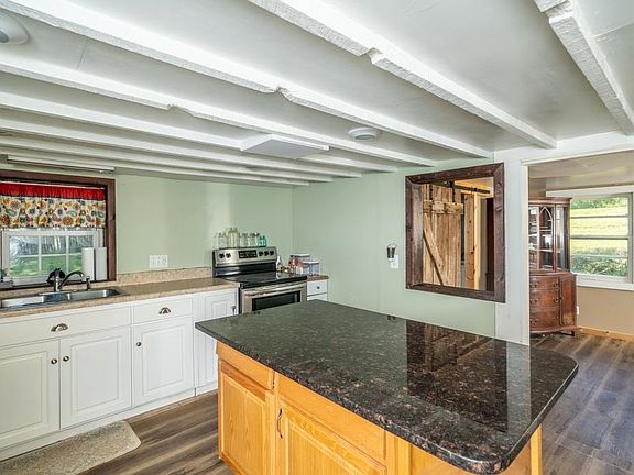 Updated original farmhouse on almost 5 acres! Enjoy the beautiful views of the mountains from the front porch. This farmhouse features a spacious living room with picture window, new kitchen, dining room, laundry room with half bath and a mud room on the main level. There are three bedrooms and a full bathroom located on the second level. The farmhouse has been updated with all new electric, a three unit mini-split heat pump system, all new kitchen, vinyl plank flooring through out the main level, new interior painting, new pressure tank and water softener. The well was installed in 2004 and the septic was updated with 3 additional lines in 2000. A detached two car garage has been started and would be easy to close in before winter. The acreage is mostly wooded and there are a few trails cut throughout. Don't miss your chance to own this beautiful property that offers loads of potential.