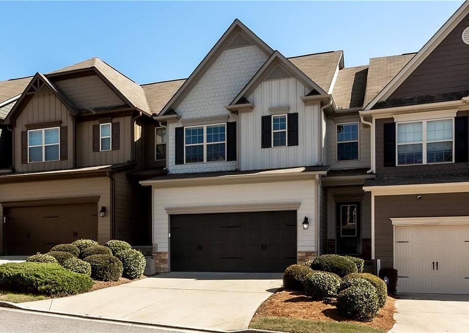 Enjoy the carefree, low maintenance lifestyle offered by this well-appointed, move-in ready, gated townhome with beautiful Atlanta skyline views! Recent property upgrades include brand new roof, exterior paint, refurbished deck, and hardwood treads on interior stairs. Fabulous location with easy access to US 278, short drive to downtown Atlanta, Hartsfield Jackson Airport, shops and businesses. Covered front porch entry. Open concept floor plan. 10 ft ceilings. Hardwood floors on main, stairs and upper level. Convenient kitchen access from garage, with newer SS appliances, granite counters, tons of cabinets, and food pantry. Spacious Family/ Dining room with cozy fireplace. Guest Powder room on main. Upstairs, a convenient Laundry, oversized Primary Bedroom w/ double door entry, trey ceilings, lots of windows, and ensuite tiled bathroom; secondary bedrooms share an adjoining bathroom. But wait, there's more... a spacious unfinished basement w/ exterior access is insulated, stubbed, and ready to be finished. This intimate Community offers a Club House, salt water gunite-pool, w/ extra parking for you and your guests. The exterior properties and the grounds are maintained by the HOA.