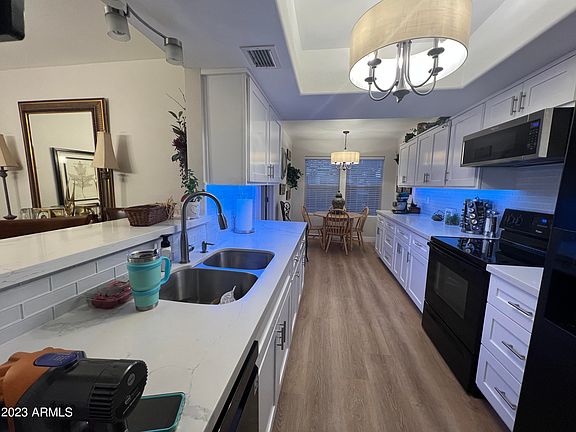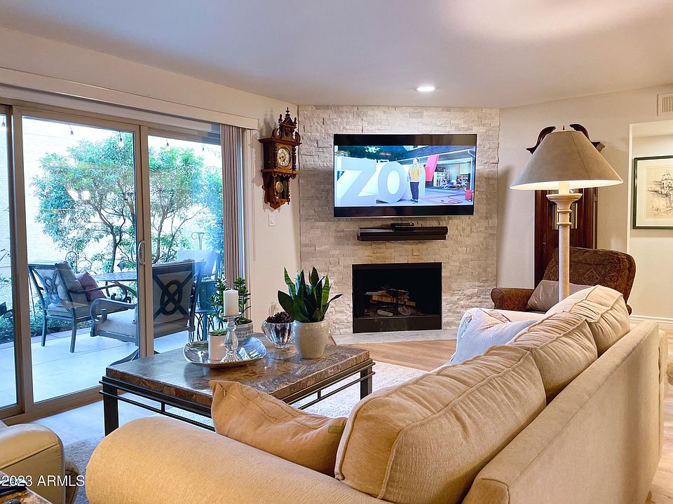 Experience modern elegance and sophistication in the heart of South Scottsdale's fabulous Villa Estados Subdivision with this stunning 3-bedroom, 2-bathroom condo. The kitchen is a chef's dream with top-of-the-line new appliances, soft-close cabinets with brushed nickel hardware, white/gray granite counters, white subway tile back splash, and under-cabinet lighting. The bathrooms have been tastefully upgraded with new white granite counter tops, brushed nickel hardware, sinks, and shower fixtures, and the master bathroom boasts his and hers sinks and a spacious walk-in shower. Enjoy the contemporary LED lighting, painted walk-in closets, wood-burning fireplace, and new chandeliers and recessed lighting throughout. With new roofs recently installed by the HOA, this condo offers luxurious living and peace of mind. The community features two heated pools, lush landscaping, and gas BBQ grills, and is close to elite attractions like Old Town, Fashion Square Mall, Camelback Mountain, and gourmet restaurants. Whether for vacation or full-time living, this condo is a must-see!