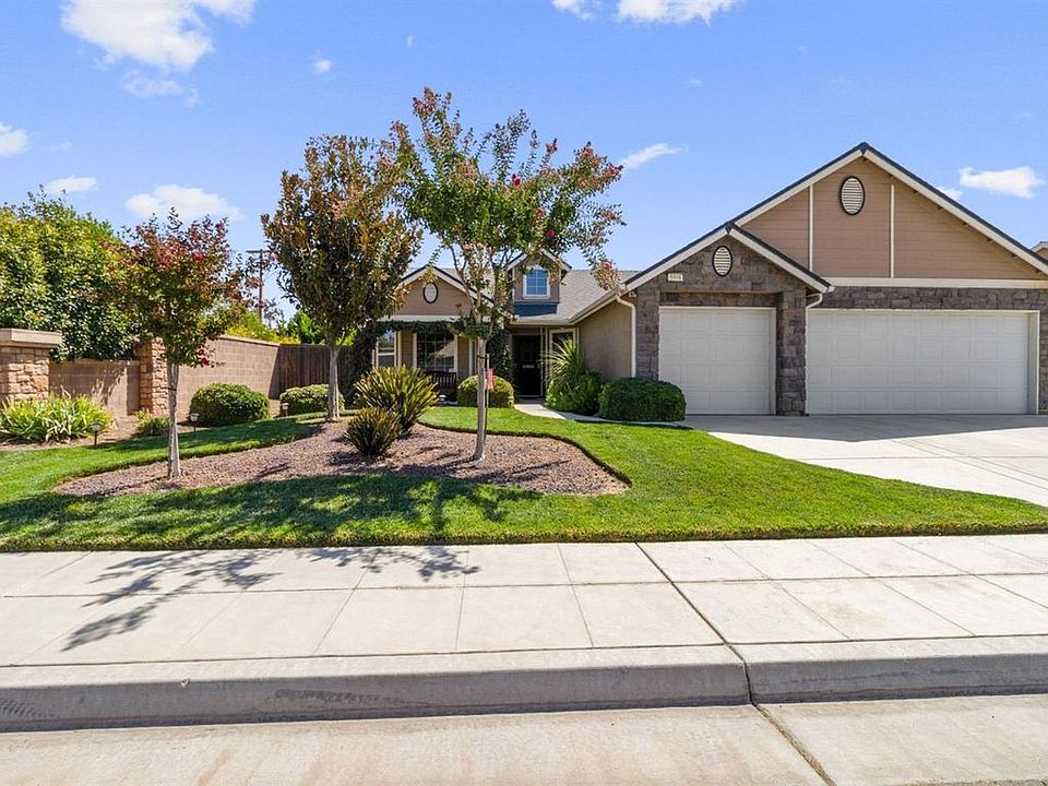Home Sweet Home! You will fall in love with this beautiful large corner lot 4/2 home with custom features. The owners put a lot of care in making this home ideal. You will appreciate the amenities such as: owned solar, sink filtration, water softener, tankless water heater, wired alarm, automatic sprinklers including drip system, granite counters, stainless steel appliances, ceiling fans throughout, RV parking, & well-groomed landscaping. The RV parking has 60 feet of concrete and has steel fence & steel gate. There is a large covered patio with ceiling fans. Home has an open concept kitchen, ideal for entertaining guest. Master suite is serene with its large master bath equipped with separate shower, his and hers sinks, walk in closet, and relax while you soak in the large tub. Other features include a 3car garage and, an addition to the great living room, there is a separate den that can be used for extra living space or an office. The back yard is large enough to add a swimming pool