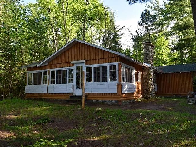 Log Cottage on beautiful Sunset Lake with 416 ft. of sand frontage. This vertical log cottage has 3+ bedrooms, a newer roof, newer 3 bed room septic, and a dry boathouse. It is private and has another nice site for building your year around home. It has a partial basement and could easily be winterized for you winter sports weekends. Sunset is a private 213 acre lake that is deep and clear. It also includes a roll out pier worth about $7,000. Priced 40K under Vilas County Tax Assessment.