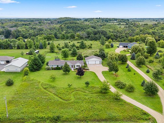 Space. Privacy. Updates. This Hudson home has it all. Set on 3.6 acres with winding trails through the back prairie, gardens, a chicken coop, and fruit trees galore (apples, pears, plums, raspberries, strawberries, grapes, even asparagus!) it’s a property that truly lives large inside and out. Step inside to find beautiful refinished Australian cypress hardwoods, brand-new carpet, and modern updates throughout, all tied together with a freshly updated exterior featuring a new roof and siding. Six bedrooms give you room to spread out, including a private primary suite with full bath. The main level offers both a living room AND a family room, while the basement has an additional hangout space and MASSIVE rec room perfect for your home gym and storage. It’s ready for whatever you dream up. Summer days are better here too, with a 3-year-old above-ground pool and an oversized 3-car garage for all your toys. Tucked on a quiet country road yet just minutes to Hudson, River Falls, and Roberts, it’s the perfect blend of country living and convenience.