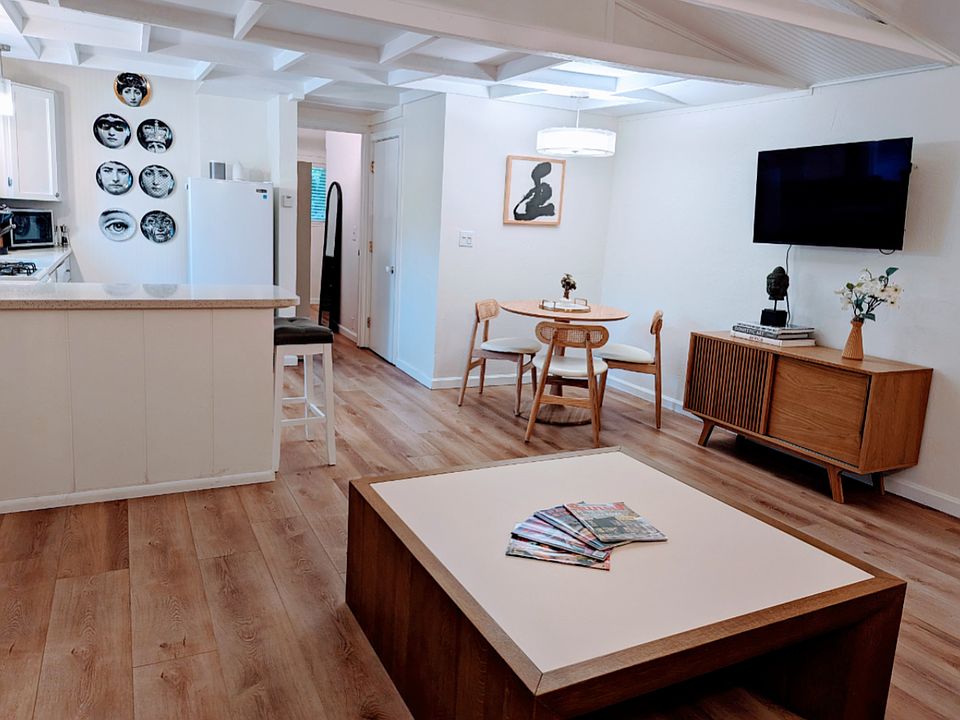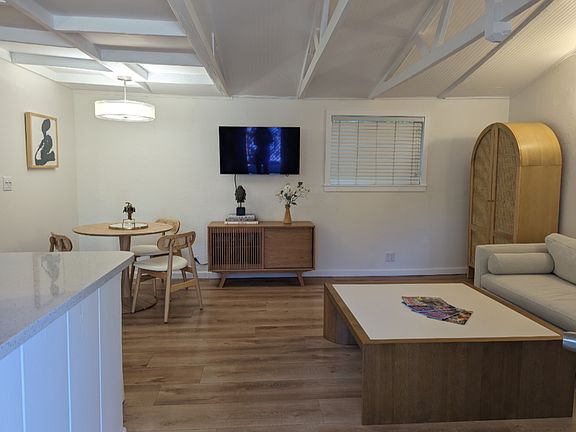 Charming, light, and airy one-bedroom cottage A-frame with high ceilings perfect for a couple or a single adult. Available unfurnished. Recent updates in July 2024 include new floors throughout, newly painted throughout, a New LG washer and dryer, and other updates. The cottage is located within a few minutes walk to the quaint shops, art gallery, salons, wine bar and restaurants located at Ross Common as well as Woodlands Market, College of Marin, and creekside bike and walking paths. Also within a few minutes walk, are the Guesthouse and other great restaurants in Kentfield or Gott's and Loving Cup in Greenbrae. The Bay Club and other great gyms, pickleball, and tennis courts are within a ten-minute walk and Larkspur cinema and local spots such as Picco are within a 15-minute walk. Marin General Hospital is a short walk or drive away. The property is located within a few minutes of Phoenix Lake and hiking trails. The cottage is located behind the main home where the landlord lives. The bus to San Francisco is within a five-minute walk. *The home is on the border of Ross and Kentfield. It is not located in Greenbrae, but it is within a few minutes of Greenbrae. The minimum lease is 6 months. Rent is due the first of every month and pro rated for the first month. All deposits are due upon lease signature. Water and WIFI (800 Mbps download speed) are included in the rent. Pets are allowed with an additional pet deposit of one month's rent in addition to the security deposit. There is a one-time cleaning fee of $350 upon termination of the lease. There is one parking spot in front of the cottage and additional parking is available on the street. This is a non-smoking property. The tenant is required to manage the minimal landscaping on the property.