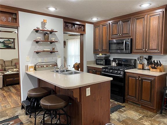 Beautiful, like new, custom built home in Westwood Estates! Come see for yourself how lovely this 2 bedroom, two bath manufactured home is! The kitchen has gorgeous cherry cabinets, Corian countertops, and is really quite spacious with an island and large area for your dining table. There is a master bedroom with a bath and a walk in closet. On the other side of the home sits the second bedroom. The living rooms is awesome with built in book shelves and hard wood floors! There is also a laundry room, central air, and gas heat! This place was built to last with 2' x 6' construction! Another bonus with this manufactured home is that it has sheet rock walls. There is a deck for enjoying sunsets and a shed for all your toys! All of this and located at the end of a dead end road. You will love the easy living this home offers!