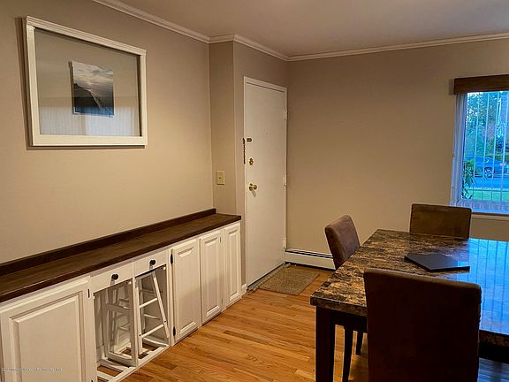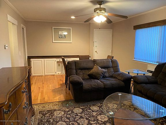 Impressive first level co-op with hardwood floors & in unit laundry in desirable Laurel Gardens. Complex offers a pool & clubhouse. The monthly fee includes taxes, heat, hot water, grounds maintenance & snow removal. Property is located close to the GSP/Rt 18/Rt 35, close to shopping, restaurants and beaches. Unit was freshly painted, offers a spacious living room with newer a/c unit, built in server & crown molding, large bedroom with two lit closets, tiled full bathroom, ceiling fans & recessed lights, nicely appointed eat-in kitchen with attractive cabinetry, marble tile countertops, gas range w/ built-in microwave, dishwasher, wainscoting & pantry. The unit's assigned parking space is directly outside the back door. Seller will include window treatments & furniture in the sale price!