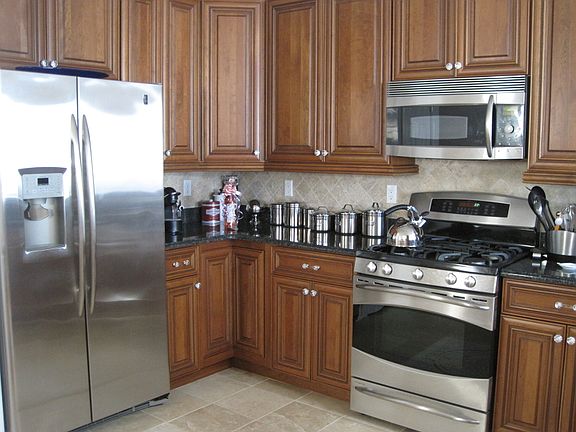 Totally upgraded & hardly lived in! Top of the line kitchen appliance & bath fixtures, wash & dryer , hardwood floor, central vac, 2 zone heating, central a/c. Ground floor - 2 car garage, ef, closets. 1st floor open flow gourmet kitchen w/pantry, granite counter tops. Top of the line GE Profile SS appliances. Vaulted ceilings and a gas fireplace in the living room. Master bedroom has a walk in closet, terrace, master bath (has a spa feel) shower and whirlpool tub. 2nd floor has 2 bedrooms with walk in closets, bathroom, and loft. EZ access to Highways & Public Trans. Absolutely NO pets allowed.