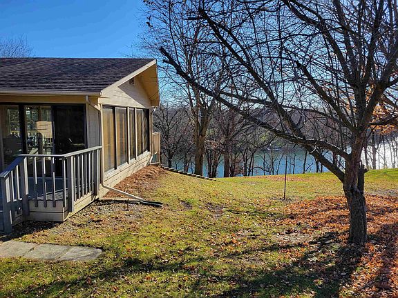 Impressive lake house at Apple Canyon Lake. Sited just off the water's edge and with transferable dock (5-94-3) just below the property makes it ideal for the getaway you're looking for. Spacious home with open kitchen to dining concept adjoined by living room with gas fireplace. Slider door access off the living room leads out to a sunroom with gorgeous lake views. Three bedrooms to be found on the main floor along with one full & one-half bath. Large deck spanning the length of the home with southern exposure overlooking the lake below. Lower level offers tons more living space with a family room with wood burning fireplace and wet bar. Slider door access out to paver patio overlooking Apple Canyon Lake. Two car attached garage. Covenants and restrictions apply. Association dues & fees apply. Square footage is an approximation.