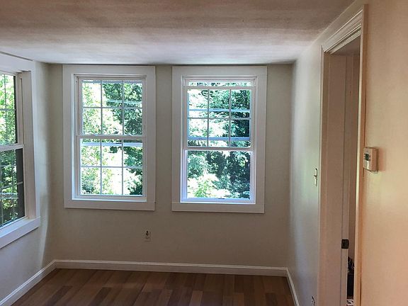 This apartment is the first floor of a two family house plus you have full use of the basement for the laundry and storage. The apartment has 2 bedrooms, One is 8x16 with a small closet and the other 9x12 without a closet, Both bedrooms will fit a queen sized bed but king would be too crowded The living room (9x12), an eat in kitchen (8x14) and a bath (5x8) are all contiguous and is the center of the layout so the bedrooms are separated.This apartment has a full unfinished walk out basement with a small garage area, a work bench, a utility sink and a washer/dryer hookup. The floor is rough concrete and it is damp but Ok for storage off the ground. the house is at the end of a dead end long driveway in the woods the yard is fantastic and so secluded. It is adjacent to the Airline trail system. There is a lovely brick patio off the kitchen. Please fill out the online application that is available as part of Zillow.com You pay for oil heat and electric. Water is included as it is a well. You share lawn maintenance and snow removal with the top floor tenants.