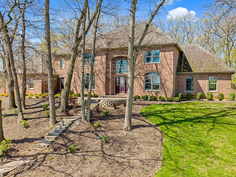 You will fall in love with this all-brick property that sits on a 2.25 acre wooded lot boasting gorgeous wooded views from every window! Enjoy peace and privacy without all the grass to maintain. This house has been completely updated! Freshly painted throughout, this home offers brand new exterior and interior lighting, new plumbing fixtures and hardware, new hardwood, carpet and tile floors, the re-done kitchen and baths are very hip and the now decor will delight you! Brand new A/C and heating systems have been installed with the latest microbial air cleaning system, including new attic insulation. This immaculate updated house has 9415 sq feet of finished living space. The soaring entry greets you and is flanked by the formal dining room and casual sitting room. The family room is open to the gourmet chef's kitchen and features a gorgeous fireplace and wall of windows to take advantage of the amazing views of your private forested backyard. A handsome library with built ins on two walls is a great retreat. The main floor media room has three walls of windows and high ceilings. A brand-new powder room, butlers serving area, laundry room and mud room round out the main floor living space. Upstairs via the split grand staircase are four bedrooms and a flexible room or 5th bedroom. The master is a retreat in itself with dual fireplaces, sitting room, luxury bath with new shower, walk in closet with amazing views. Bedrooms 2 and 3 share a newly updated hall bath and bedroom 4 and bonus room/5th bedroom share an ensuite bath. The bonus room would make a great kids playroom, artist loft, music room etc. The walk out lower level has new hardwood flooring and offers even more living space with a large family room with fireplace, recreation room, bar and dining area, full bath, bedroom, exercise room and storage too! Other bonuses are the four-car side load garage, new asphalt driveway, new back deck, four sided brick construction, updated lawn sprinkler system with multiple zones, sits up on a hill, tons of brick patio space for amazing private and serene outdoor parties. No carpet on main level! So many news! Great location close to Randall Rd Shopping, Schools, Metra and more- Crane Road Estates is one of St. Charles most sought-after neighborhoods with Multimillion dollar custom homes! Make this your own! This home won't last long!
