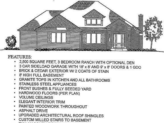 PROPOSED new construction with J CARL HOMES, INC. Truly make this home your own with 2,500+ square feet of living + WALKOUT lower level, including 3 bedrooms and optional den. The brick and cedar construction includes a 3-car sideload garage with asphalt driveway, plus front bushes and seeded yard. Full 8' walk-out basement, ready for your finishing touches. The gourmet chef's kitchen comes with granite and stainless steel. Hardwood flooring per plan with elegant trim and painted woodwork. Additional features include upgraded architectural shingles, custom milled stairs to basement, wood burning fireplace with stone face and Marvin integrity windows. Enjoy it all with room to breathe on 1.83 acres of tranquility.