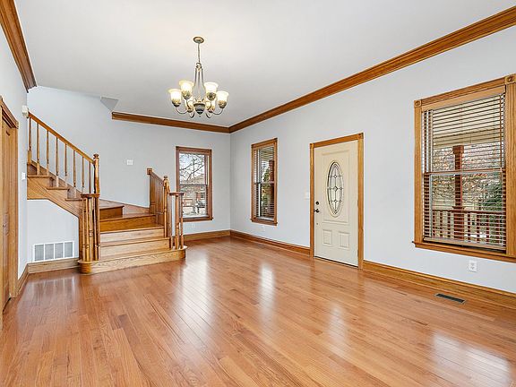 This renovated farmhouse from the 1900s boasts a charming blend of historic details and modern comforts. On the main level, you'll find beautiful hardwood floors, an elegant oak staircase, and high volume ceilings that create a bright and spacious atmosphere. The abundance of natural light enhances the overall appeal of the home. The spacious kitchen is a highlight, offering ample space for cooking and entertaining. The oversize garage comes with a bonus room that can be utilized as a home office, playroom, or studio, providing versatility to suit various needs. The English basement features tons of storage space, a guest suite, and a full bathroom. This additional living space enhances the functionality of the home and provides options for accommodating guests and entertaining. Situated on a large lot, the property also features an inviting front porch, perfect for enjoying outdoor moments. With 4 bedrooms and 2.5 baths, the farmhouse is thoughtfully designed to meet the needs of a modern family. Recent updates include fresh paint and new flooring throughout, adding a touch of contemporary style to this timeless beauty.