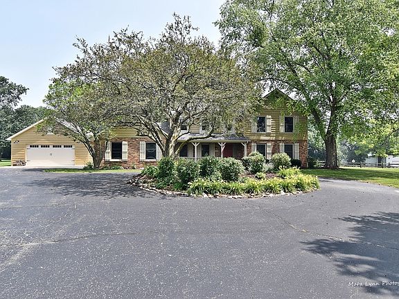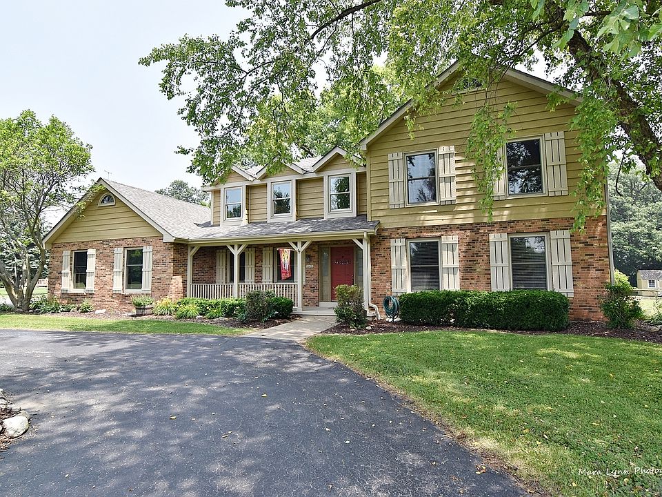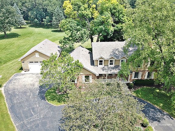 This spacious 2-story home in a quiet, rural neighborhood sits on almost 2 acres and is minutes from 88 & 47. Peaceful, country living with attractive, park-like views, yet close to shopping, restaurants, train station and the interstate. Large corner lot with expansive yard and mature trees that backs to woods. Watch the sunset from the front porch, entertain with summer bbqs on the composite deck, and enjoy the warmth of the wood-burning fireplace in the winter. Plenty of storage for trucks, ATVs, toys and tools with large detached garage, two sheds and attached 2-car garage. Updated interior with open floor plan, hardwood floors, granite countertops, huge living room with fireplace, eat-in kitchen, and separate dining room. Four spacious bedrooms upstairs, all with generous closets, 3.5 baths, large work / laundry / mud room and full basement with recessed lighting. New roof, all newer mechanicals, and natural gas.