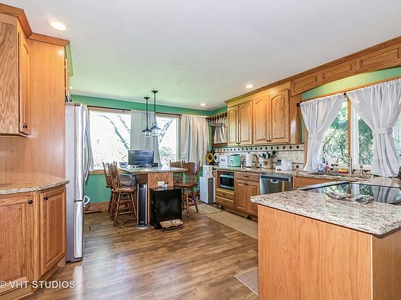 Extraordinary equestrian opportunity! This 5 acre farmette offers 4 bedrooms, 2 baths and a 5 car garage. Updated kitchen features stainless steel appliances and granite countertops. The 74'x90' Cleary barn boasts 8 horse stalls, tack room and a 50'x90' arena. The house includes original woodwork, built-ins, original hardwood flooring under carpet with an abundance of natural light. This expansive property also includes pasture, riding track, sheds, 2 corn crib, mature fruit trees and an attached 28'x49' barn w/ loft. There are 2 additional horse stalls behind 5 car garage. Also, potential for a Barndominium transformation. Ideal for auto, outdoor and hobby enthusiasts. New well in 2021 & septic in 2018. Private, peaceful and the possibilities are endless. Zoned Farming District. Approximately 10 minutes to I-88. This is your chance to own prime real estate. Sold as is.