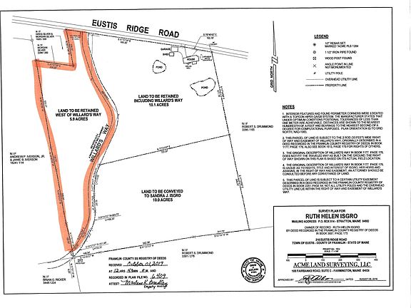 Experience 5.9+ acres of Maine beauty at the corner of Eustis Ridge Road and Willards Way. This attractive lot offers a balance of woods and partially cleared areas with a natural spring, perfect for building your dream home, camp, or recreational getaway. Enjoy the ideal blend of privacy and accessibility with nearby power, easy road access, and plenty of wildlife.