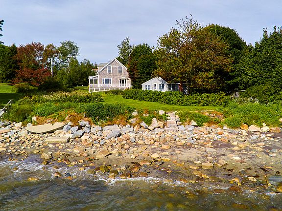 ENJOY STUNNING SUNRISES OVER THE ISLANDS AND VESSELS THAT PLY PENOBSCOT BAY, while listening to the waves gently washing the shore as you relax on an ocean side deck. Uniquely situated, offering a rustic water's edge cottage and a nearly completed home, this property offers potential-plus in a quintessentially Maine seaside setting.