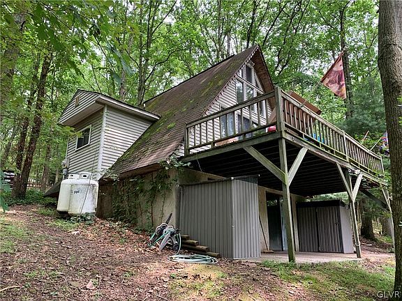 Discover tranquility in this delightful 2-bedroom, 1-bath A-frame chalet, nestled in the serene woodlands. Whether you're seeking a full-time residence, or a vacation retreat, this cozy home offers the ideal blend of comfort and adventure. Enjoy a welcoming open living space that seamlessly blends modern upgrades with rustic charm. A charming ladder leads to a cozy 2nd-floor loft, makes a great second bedroom. Enjoy the wooded wonderland surrounding you on the upper deck or relax next to a warm, crackling fire in the yard. Experience the convenience of contemporary amenities within a picturesque, nature-immersed setting. Just moments away for stunning natural scenery and outdoor activities of Lehigh Gorge State Park. Adventure awaits at one of the region's top whitewater destinations, Pocono Whitewater Rafting. Explore the rich history, quaint shops, and delightful dining options in charming downtown historic Jim Thorpe. All this tucked away in peaceful wooded bliss, this A-frame chalet promises a retreat from the everyday, offering both relaxation and adventure in a unique, modern package.