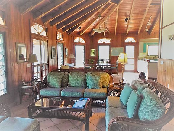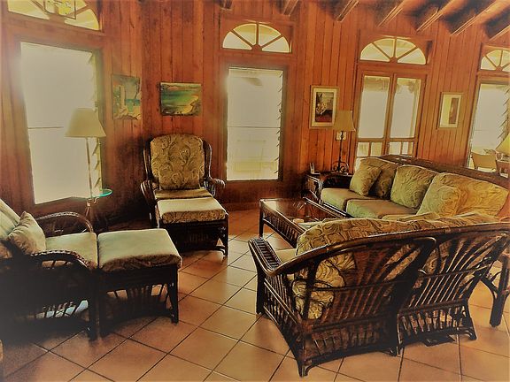 Coral Rhapsody is a spacious three bedroom, two and a half bath home situated on a private over-sized lot offering lovely views of Coral Bay Harbor. Wraparound covered open porches on two levels, tiled patio, large garage and garden showers.