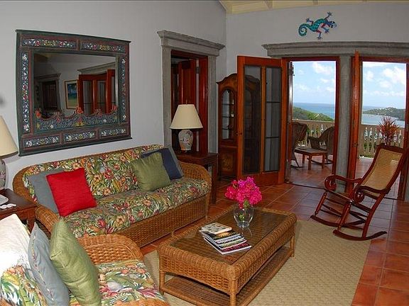 LA BELLA VILLA is a classic designed, exquisitely handcrafted stone & masonry 2 bed/2 bath pool villa w/many custom features. Cast concrete gutters & window frames, beautiful mahogany doors, windows & shutters, vaulted ceilings, ceramic tile floors, NEFF custom kitchen w/granite sink & concrete countertops. Fully furnished with traditional Caribbean furniture. Enjoy the enchanting views of Coral Bay Harbor & beyond from the spacious tiled 40X12 covered verandah. The inviting pool is surrounded w/Trex decking & outdoor shower, crafted of native stone. Gated driveway & beautiful landscaped yard has room for expansion and/or additions. La Bella Villa is located in a small established neighborhood w/easy paved access. This elegant villa has impressive rental income. This gem is a must see!