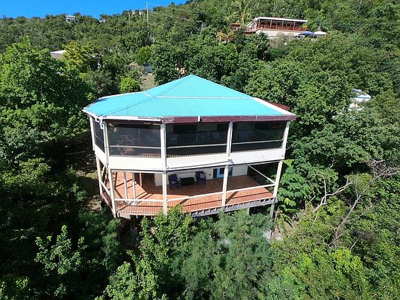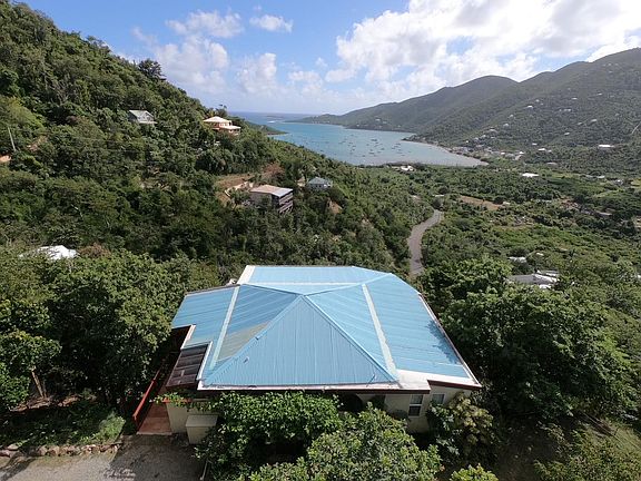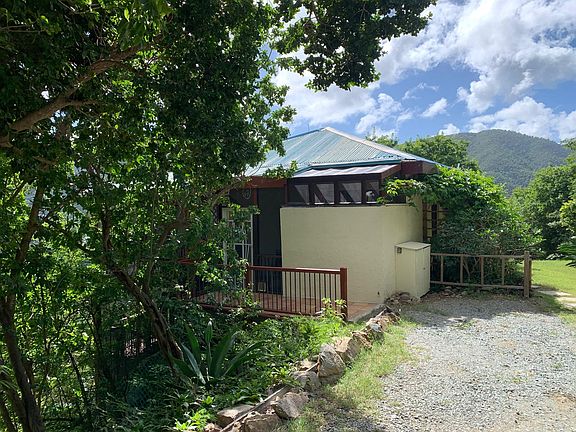 Little Palm is a solid masonry home with large covered screened porch that perfectly frames the Coral Harbor water views, the boats at anchor and enjoys the easterly breezes. 1 bedroom upstairs off the kitchen, interior staircase to the lower bedroom / bath with it's own covered porch. Minutes away from Coral Bay with multiple grocery stores and restaurants, 10 minute drive to Maho & Francis Bays and 25 minutes to Cruz Bay. Ample room to add a pool and easy ample driveway to navigate. Little Palm has maintained the natural habitat with landscaping near the house with fencing. Roll down hurricane shutters have been ordered and will be installed.