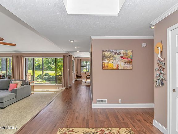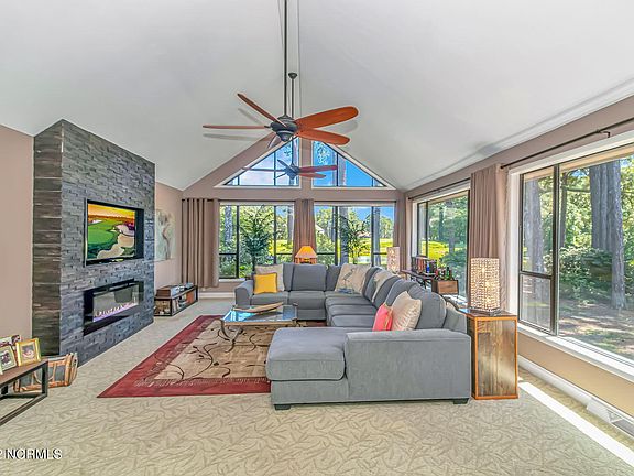 If you've been looking for a large home, located in the highly desired Carolina Shores community, with direct golf course views, here you go! This home has so much character and almost panoramic views of the golf course. The amount of windows let in so much natural light and the setting of the home is unmatched. Boasting over 2,400 feet of heated living space, this home has plenty of room. The living room is designed to overlook the golf course perfectly and features dual upgraded ceiling fans and vaulted ceiling. There is also a formal dining area between the kitchen and living area. Kitchen is very spacious and has plenty of cabinet and counter space. There is also a Carolina Room off of the kitchen with plenty of natural light, vaulted ceiling, and a slider door that leads you onto the wrap around deck overlooking the golf course! All three bedrooms are very spacious and the guest bathroom has a walk in shower. Master bath has been upgraded with a custom tile walk in shower! Outside, you'll notice the massive deck as well as the private setting of the home. It sits conveniently in a cul-de-sac with breathtaking views of the golf course and lake. The back deck is perfect for grilling and entertaining guests. To top it off, the HOA is very reasonable and features access to community amenities including a large pool. Don't wait on this one, come see it today!!! Sold Fully Furnished!