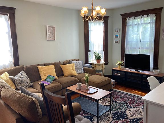 Beautiful and spacious 3 bed with living-room and dinning-room, large eat-in kitchen, lots of light and plenty of closet space, front and back porch, tandem parking, utilities paid by lessee. House is facing small, private park with playground and basketball court. Walking distance to Route 9 and Green D-Line, Brookline Village less than a mile away and mini-market one block from house. All units have front and back porches and tenants have use of small backyard. A definite must see!