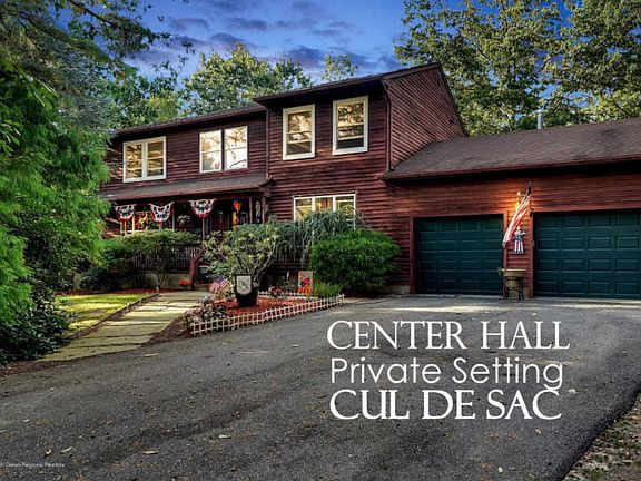 Private setting on the cul de sac is this spacious Center Hall Colonial with nearly 2,350 Sq Ft, *Plus a *Full Finished Basement, all on a beautiful one acre property. Formal Living and Dining rooms. Kitchen features newer, *Stainless Steel Appliances with a *Breakfast Room and sliding doors that lead to the deck. The Family Room offers a *Gas Fireplace and direct entry to the *Two Car Garage. Upstairs, the Master Bedroom impresses with *French Doors that open to the oversize master bath. Additional bedrooms are all generously sized. Minutes to Rt 195 and the Premium Jackson Outlets. Backs to woods.