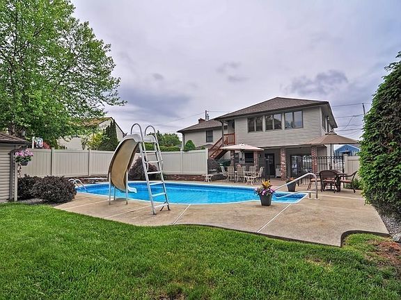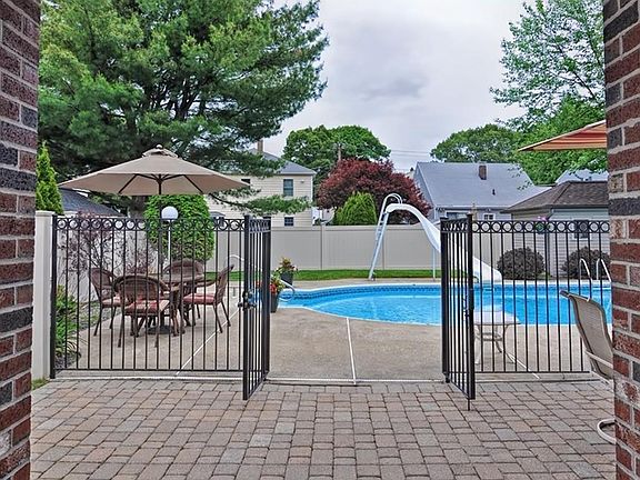 This distinctive property, located on a quiet cul-de-sac, will provide the new owner with almost 2,700 SF of living space in 11 rooms when including the lower level. Welcoming first level features a spacious floor plan with a flawless kitchen, dining area, breakfast nook, open living room, beamed and bright family room with skylights, gleaming dining room, and 3 ample bedrooms. The lower level adds a second kitchen, an additional family room with working fireplace, laundry, and two additional spacious rooms, one that can easily be used as a 4th bedroom. Outside you will find an impressively maintained villa style pool area and cabana along with meticulously landscaped grounds. Newer 7 year old roof and windows, central AC, and security system, add value to this one owner home built in 1985. This is a turnkey property that is not to be missed.