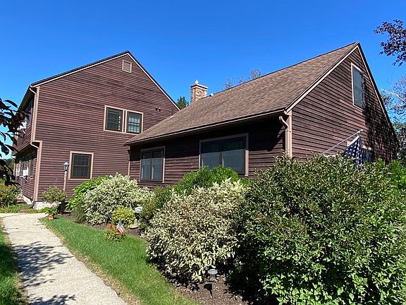 Offering all the convenience of condo living, along with many extra amenities such as first floor primary suite, fireplace in living room, sun room addition, patio with firepit, finished room in the basement and a garage. The first floor offers an open plan, with living, dining, kitchen and sun room. The living room features a cathedral ceiling and aforementioned fireplace. Off the sun room are a deck, patio with fire pit, grilling area, yard and garden space. The primary suite is conveniently located on the main floor, with bedroom, full tiled bathroom and walk in closet. Upstairs are a large second bedroom, sizable half bath and loft space with skylight. A finished room in the basement could fill many roles; family room, office, craft room, etc. There is an additional area for laundry and storage. The HVAC system has been nicely updated and is now propane fueled. The garage fits a full size car and additional storage as well. So many extras included in this lovely unit!