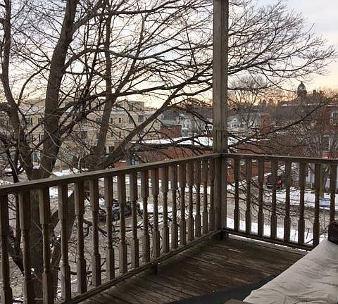 BIG Sunny 1+/2 Bedroom on top floor of large multi unit house close to Moody Street and Waltham Center! Great location with easy access to major roads, shops, buses, train to Boston, etc. Hardwood floors, living room, one full bathroom, one large bedroom (about 12x12), one smaller room (around 10x8), large balcony, big eat in kitchen. Easy street parking and free overnight municipal lot parking around the house. Laundry across the street. Great place! Tenant pays own gas and electric (gas heat, very easy to heat)