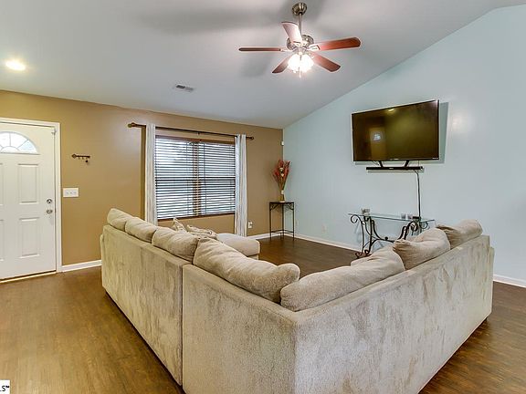 This home has it all: Great Fountain Inn location, open floor plan, outdoor living space, and small town living convenient to 385. No HOA dues with this one. At the end of a quiet Street. I could go on and on, but just look at the inside! The first thing you will notice is the great open floor plan with high ceilings and neutral paint colors. The great room is the perfect size for movie night, and it opens into the kitchen so the cook never misses a minute of the fun. The lovely kitchen features stylish stainless steel appliances, tile back splash, center island and an eat in area. The master bedroom is large and features a full bath and walk in closet. The secondary bedrooms share an additional hall bath. The outdoor living space is amazing. You will love the covered patio overlooking the back yard. Bring your grill and be the host. Call today and spend the Holidays in your new home!