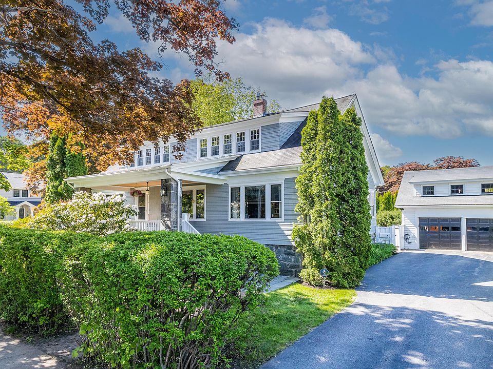 A classic home in one of South Portland's premier neighborhoods, charming inside and out. This Sylvan Site home offers first floor living on a beautiful, lush corner lot with 4 bedrooms, 3 full baths & hardwood floors throughout. The main floor features a magnificent formal dining room with original chandelier. A gracious formal living room with French doors, a gas fireplace, leaded glass window accent panels, built-ins and portico exits to a large private front porch graced by stone pillars.