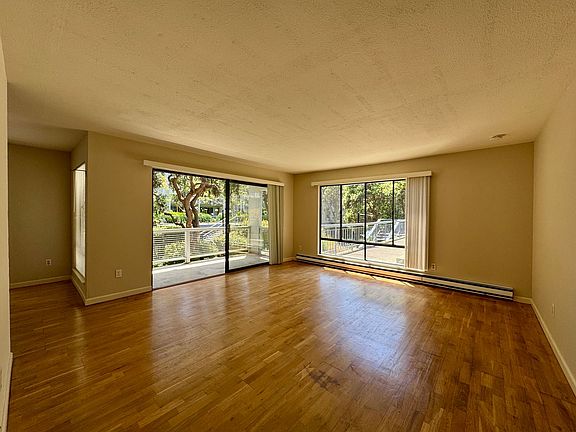 This is one of the larger 1 Bedroom corner units at over 800 square feet offering the best of indoor-outdoor living in one of Emeryville's most beloved resort-style communities. Thoughtfully updated with hardwood flooring throughout, the home features a light-filled open layout, granite countertops, and a private shaded terrace facing the fountain and treelined green belt perfect for relaxing into golden afternoons. The generous living space flows from outdoor balcony, to open living with large windows letting in all the natural light throughout the day. Unique to this unit, a second private entrance from the bedroom offers discreet access to the greenbelt, allowing for quiet comings and goings without passing through the main halls. From the sunlit interiors to the peaceful garden views, this rare corner retreat offers both serenity and convenience in an unbeatable location. This Unit Features: Bedrooms/Bathrooms: 1-bedroom, 1-bathroom Outdoor Space: Outdoor Balcony with direct access to a landscaped greenbelt Kitchen: Updated with granite countertops and modern cabinetry Bathroom: Extra large vanity counter and storage, shower with bathtub Storage: Generous built-in storage throughout Flooring: Stylish hardwood floors Laundry: App-operated commercial-size machines in building Parking: 1 covered parking space included Lease & Utilities: Lease term: 1-year lease Utilities included: Water, garbage Utilities not included: PG&E Application fee: $50 Building & Community Amenities: Fitness & Wellness: Fully equipped gym, exercise conditioning room Pools & Spas: 4 swimming pools (2 heated year-round), indoor & outdoor hot tubs Recreation: 4 tennis courts, racquetball courts Relaxation: Men's and women's saunas, steam rooms, showers, and changing rooms Security: Secure package room for deliveries Some More Amenities Nearby: Waterfront Lifestyle: Boardwalk access just steps away, plus the Bay Trail leading to Emeryville Marina Convenient Transportation: Free shuttle to BART, AC Transbay bus, AMTRAK station (1 mile away), and easy freeway access Shopping & Entertainment: Bay Street, AMC Theaters, Trader Joe's, Emeryville Public Market and Berkeley Bowl (2 miles) Cici Nicasio DRE# 02088587 All East Bay Properties DRE#01516255 *We are an Equal Opportunity Housing Provider and follow all fair housing laws.