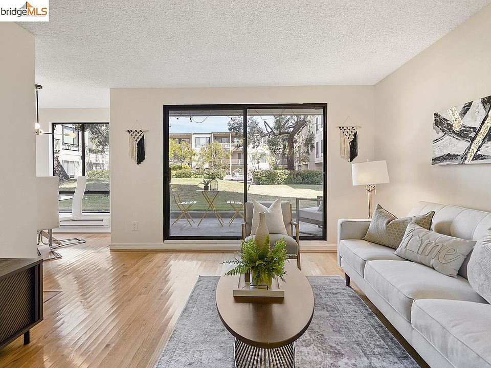 Live every day like a vacation in the coveted Watergate community, incorporating luxurious amenities and picturesque water views. Wake up each morning to natural light that floods in through tall windows and illuminates the hardwood flooring finished with dark inlay. Hone your culinary skills in the galley kitchen and serve meals under a new, and timeless light fixture in the dining area. Wander through to the living room and slide open glass doors that allow fresh air to flow in from the private patio and landscaped courtyard. After a long day, retire to the large bedroom and a bathroom that is also accessible from the hall. With endless amenities, appreciate access to extra storage, a parking spot, multiple swimming pools, gyms, and a variety of recreation. If you ever feel compelled to leave your idyllic sanctuary, you won’t be short of any fun opportunities on the bustling peninsula. Enjoy every part of the Bay with ample access to major roads, Amtrak and BART.