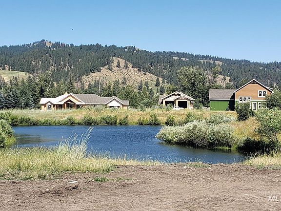 CUSTOM HOME OVERLOOKING A POND WITH MASSIVE COVERED BACK PATIO! Enjoy mountain views on the 180 degree front porch! Open floorplan with windows that capture the beauty of South Fork Landing. Entertainer's kitchen with large island, pantry, and Thermador appliances. Relax by the wood-burning stone fireplace on cold Garden Valley nights. Main level master with en-suite bath with dual vanities, walk-in closet, and access to patio. Two additional bedrooms or office on main level. Upper level boasts two bedrooms and a full bath. Plenty of room for toys and storage in the oversized garage. Designer touches and finishes throughout this stunning mountain home!