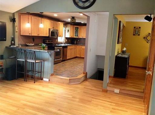 BEAUTIFUL inside and out, this RANCH is updated, impeccably maintained and move in ready! This HOME has great flow with a WIDE OPEN FLOOR PLAN. The family room/dining room ADDITION WITH CATHEDRAL CEILINGS increases the square footage by approx 500 sq ft. The gleaming hardwood floors throughout, the elegant ceramic tile in the full bathroom and newly remodeled kitchen make for a very PLEASANT DECOR INSIDE, while the trex deck, paver patio, stone wall, and manicured landscape provide for a FABULOUS SETTING OUTSIDE. **The added on LR/DR is equipped with a highly efficient MINI SPLIT WALL A/C unit that cools the entire home. (APO)** This property also has a multi functional finished basement along with a wood shop/tool shop room. This home is located on a corner lot within a very desirable neighborhood. EXTRAS: Bose speakers, central vac, huge/enormous shed w/extras, TONS OF "MOOD" LIGHTING, NEWER ROOF, newer interior doors, REPLACEMENT WINDOWS & the list goes on! Absolutely worth a look!
