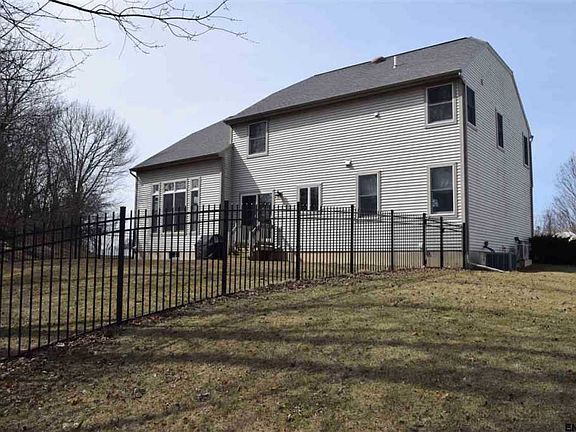 Welcome to this spacious, updated 4 bedroom, 2.5 bath, 10-year-young, 2,894 sq ft colonial with a 3 car garage in North Colonie Schools...perfectly set on the back of the cul-de-sac in a convenient neighborhood off Maxwell Rd just minutes to everything! This home has over $130K in improvements in the last 2 years including custom picture moldings through many of the living areas, crown molding in most rooms, as well as a chair rail in the formal dining room and living rooms. The kitchen cabinets have been updated, and there was a new dishwasher in 2015 as well as pest-resistant attic insulation, fresh paint throughout, and custom window treatments added in most rooms. The fence was added to the back yard, the front landscaping was updated, a mantle update for the gas fireplace in the family room, and the full basement was beautifully finished w/ an egress window added. Additional home features include granite counters in the kitchen, a first floor study with a single French door for privacy, 9 ft ceilings on the main floor, a 2 story foyer with a turned staircase leading to the second floor. The mudroom off the 3 car garage features a coat closet and the laundry hook-up is still available there (the laundry area is currently on the 2nd floor). There are oak hardwood floors throughout the first floor and second floor hallway as well as oak treads on the staircase. The sliding glass door from the eating area leads to the yard, and the family room features a vaulted ceiling, the gas fireplace, and recessed lighting. There's a spacious master bedroom with neutral carpeting, custom window treatments, a walk-in closet, and a master bathroom with a tiled shower, ceramic tile flooring, a whirlpool tub, and two sink/vanities. The washer / dryer is currently stacking in the master bedroom closet but could be relocated back to the main floor mud room. There are 3 additional generously-sized bedrooms with overhead lighting, neutral carpeting, and custom window treatments. Offers a .53 acre lot, paved driveway w/ a new basketball net, natural gas, hot air heat, central air conditioning, 200 AMP electric, and public water and sewer.