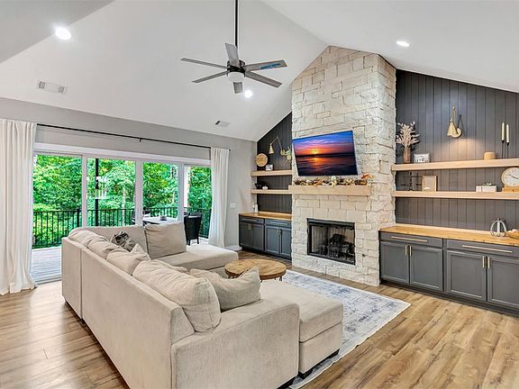 9-foot ceilings on the main level, and 10-foot ceilings downstairs evoke a sense of spaciousness, while touches like stacked stone, wall treatments, and built ins make rooms warm and homey.
