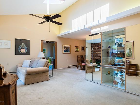 - RoomLivingRoomFeatures: Skylight, Floor - W/W Carpet, Ceilings - Beamed