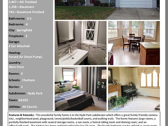 Wonderful 2 story home for sale in desirable Hyde Park subdivision. This recently updated home has 4 bedrooms, 2.5 baths, 3 fireplaces, attached sunroom and finished basement. Large lot on cul de sac! Home has been inspected by Jim House with Safe House Inspections LLC. Attached flyer has additional amenities such as pool, park, pickle ball/tennis/ courts. As well as information on recent updates.