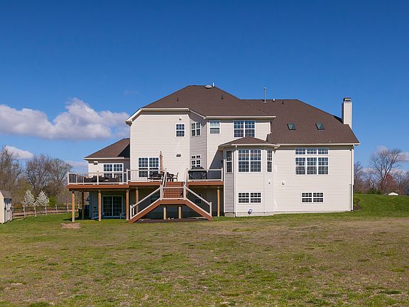 Move in ready is an understatement, this meticulous homeowner has thought of everything! Enter this expanded Paparone Stoneleigh model into the grand 2 story foyer & be welcomed with an impressive curved oak staircase, crown molding, shadow boxes & Brazilian Koa Bellawood hardwood flooring that spans throughout the study, living room and dining room. To the right of the foyer the open floor plan leads you to step down into the spacious living room, & beyond that is the formal dining room. Just off the dining room you'll find the added estate room, with tons of windows to allow for lots of natural light. The completely remodeled kitchen features 42" cabinets, granite counter tops, a large center island with stools (that are staying!), newer ss appliances, porcelain tile floor and a large pantry offering even more storage. For even more entertaining space there is the window filled, rounded morning room just off the kitchen. Completely open to the kitchen is the family room that features 2 story high ceiling with skylights & dual ceiling fans, neutral colored Berber carpet, a gas fireplace with a brand new insert & surround & a custom built audio niche with pull out drawers & access to run wires through walls to hide them away. A redone powder room, a handsomely decorated study with bay windows & large laundry room with custom built closet complete the first floor. Take either the rear staircase or the front & you'll arrive at the second floor that contains the master suite, 3 additional bedrooms (1 with a bonus room), a spacious hall bath with double sinks & a linen closet. Highlights of the master suite are a tray ceiling, large his & hers walk in closets & a master bathroom with double sinks, walk in shower, huge soaking tub & private water closet room. In addition, there is a full basement with walkout, plenty of storage room or when you're ready to finish, it's already plumbed for a full bathroom! The upgrades to this exceptional home are endless; all new electrical fixtures with money saving LED bulbs in large majority of fixtures, designer wall paint throughout, recessed lighting in most rooms, sounds system/intercom throughout. This remarkable home also has a 3 car garage & a custom 600sf composite deck. Deck features pvc & metal spindles railing & lighted posts, built in audio speakers & a lighted butterfly staircase that leads to the fire pit in yard. Ideal space for summer gatherings. All in a desirable school system & convenient to major highways.