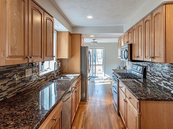 - Kit Dscrp: Main Level, Dining Area, Flooring - Hardwood, Countertops - Stone/Granite/Solid, Deck - Exterior, Stainless Steel Appliances, Window(s) - Bay/Bow/Box, Exterior Access, Gas Stove