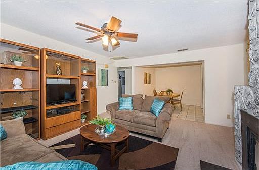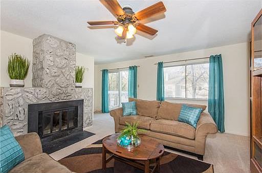 Spacious condo has living room with stone fireplace and sliding glass door to deck, formal dining room, galley style kitchen with new stainless steel appliances, full bath and master bedroom on the main level, second level has den and bedroom. Great location and schools. New Central AC & newer hot water heater.