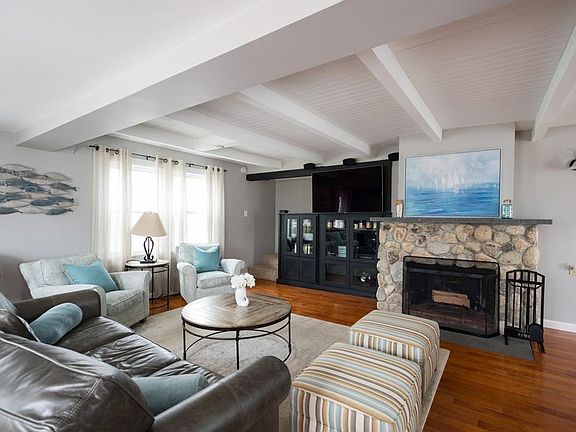Pemberton Point! Amazing location ! Just steps to the commuter Boat into Boston! No better way to commute into the city with such ease ! First time offering in 50 years! This well loved and cared for home has gone through many renovations and has been meticulously maintained ; ready for new owners to call HOME! You will be instantly charmed as you enter the home into the bright newly updated mudroom . From there an open concept living room with beautiful stone fireplace centered nicely with adjacent dining area . Stunning coffered ceilings and hardwoods compliment this great room! Large kitchen with great space to entertain ; lovely deck off the back overlooking fully fenced in back yard with shed . The second level offers three nice sized bedrooms with water views, center bath with oversized walk in closet allowing ample room to expand should you desire. Enjoy the upper deck with endless sunrises , sunsets and take in the salt air! Come see !