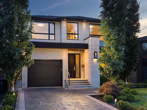 Tucked between the ravines of Taylor Creek and the Don River lies the Parkview Hills neighbourhood of E. York. Near the centre of this quiet and established enclave sits 6 Ashall Boulevard. This Transitional-style residence blends traditional and contemporary aesthetics to create a timeless and comfortable home. From the street, the oversized entrance door and vast windows command attention, while the limestone façade, soft lighting, and modern landscaping create a sense of space and elegance. Inside this home, potential homeowners will be impressed by the hardwood flooring, designer lighting, a gorgeous kitchen featuring Miele appliances and a waterfall Quartz counter, and windows that nearly fill the walls. The generous second story is a dream for large families, featuring four spacious bedrooms. These include a primary wing with an en-suite and a large walk-in closet, a second large bedroom with a luxury 3-piece en-suite, and two additional bedrooms, along with a third separate full-sized bathroom. The finished basement offers yet another bedroom, a 3-piece bathroom, and a vast recreational space suitable for a home office, a gym, or a media space. Walking out to the large, fenced-in backyard, additional landscape upgrades are evident, including a stunning pergola and patio extension by Earthscapes, as well as gorgeous perennials that provide year-round colour. 6 Ashall Boulevard is in the excellent Presteign Heights Elementary School catchment. Enjoy hosting? Have a large family? With five bedrooms and five bathrooms, this home is designed for living, and with over 4,000 sq ft of living space, there's plenty of room to do it.
