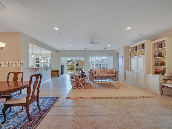 Popular Dogwood model located on a tranquil lagoon. This 2BD 2BA with Den Office features an open layout with large kitchen, dining area walk out bay window, white cabinets, Corian counters and crown molding. Sunroom Carolina Room overlooks an extended patio. The living room has a built-in entertainment center. The Den Office has French doors. Plantation shutters locater throughout the home. Laundry room has extra storage cabinets. The primary bedroom has a walk out bay window with views of the lagoon and an updated primary bath. Located in Beaufort County and close to many amenities, this home will give you the ultimate Sun City experience.