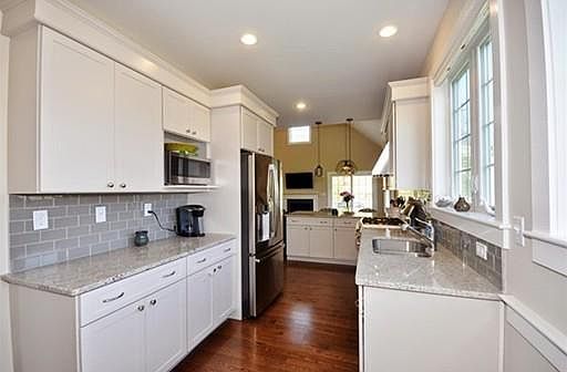 Move right into the newest community in Burlington - Holly Glen! This is a resale and will be ready for immediate occupancy. Beautifully appointed end unit in a cul-de-suc neighborhood consisting of 32 homes. A perfect combination of private neighborhood and urban setting, this stylish home has everything you want - first floor master suite with walk-in closet and beautiful tiled shower, large sun filled family room with fireplace & cathedral ceiling, open plan family room/dining room/kitchen, beautifully appointed kitchen with GE appliances, tiled back splash, and peninsula. Laundry on the main living level. Upstairs features 2 generous sized bedrooms, and full bath. There is an abundance of closet space. Entertain family and friends on the over sized private deck. Located near Rts 128 and 93, Wayside Commons, Burlington Mall & Wegmans! 2 car garage parking, central air, outside storage and very convenient location make this a great place to call home.