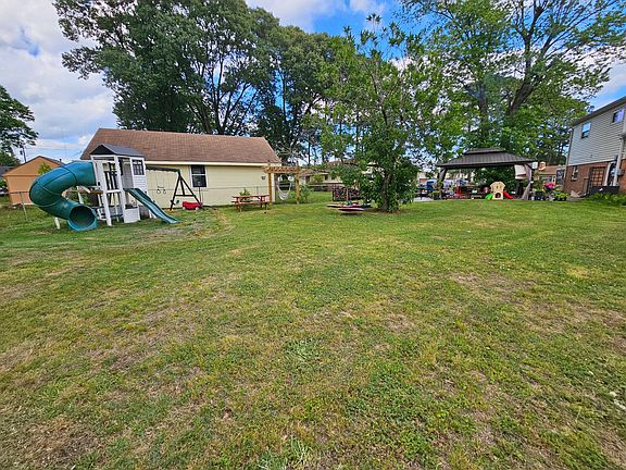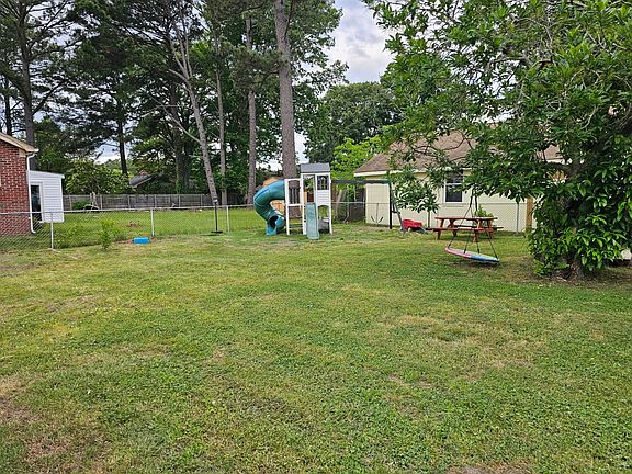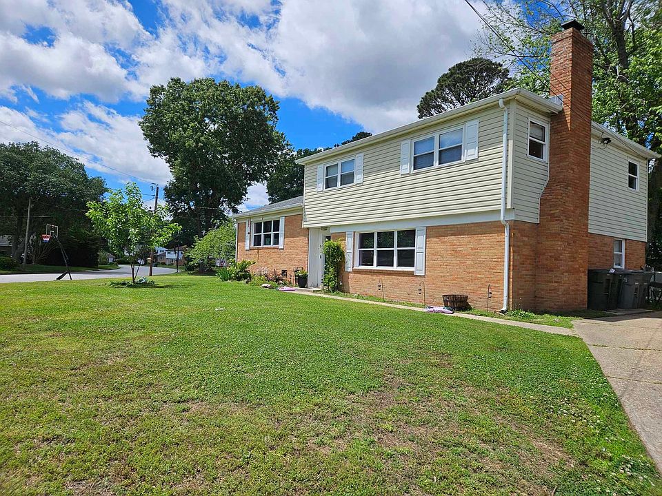 Nice tri-level single family home in Azalea Gardens located in Hampton, VA. Large fenced in backyard with a really nice stamped concrete patio,12x16 pavilion, firepit area and a kids playset with slides and swings.