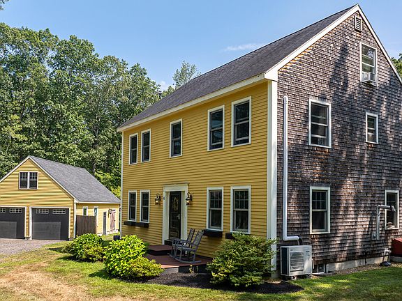 **What a Charmer!** Welcome to this beautiful 2011 New England Colonial, perfectly nestled on 1.87 acres at the end of a quiet public cul-de-sac in the highly regarded MSAD35 school district. With 3 bedrooms, 2.5 baths, and nearly every space thoughtfully designed, this home is bursting with charm and versatility. Step inside to an inviting first floor featuring gleaming hardwood floors, a newly remodeled kitchen with stainless steel appliances & quartz countertops, a formal dining room, and a cozy living area ideal for both movie nights and entertaining a crowd. A convenient half bath rounds out the main level. Just off the living room, the back deck overlooks a very private yard that abuts 66 acres of conservation land—your own serene retreat for gardening, entertaining, or simply enjoying the seasons. Upstairs, the generous en-suite primary bedroom offers a relaxing escape, complemented by additional bedrooms and the ease of second-floor laundry. The walk-up third floor provides two more versatile rooms with plenty of storage, while the finished lower level adds a spacious family room—the perfect bonus space for hobbies, guests, or play. Outside, the charm continues with a fantastic detached barn/garage, large enough for 2-3 cars plus storage above for all your toys and gear. Gardens, open yard space, and thoughtful homeowner-added details complete the picture. Close to major highways, shopping, and all that Southern Maine has to offer, it's a rare find that combines modern comfort, timeless character, and a truly special setting.
